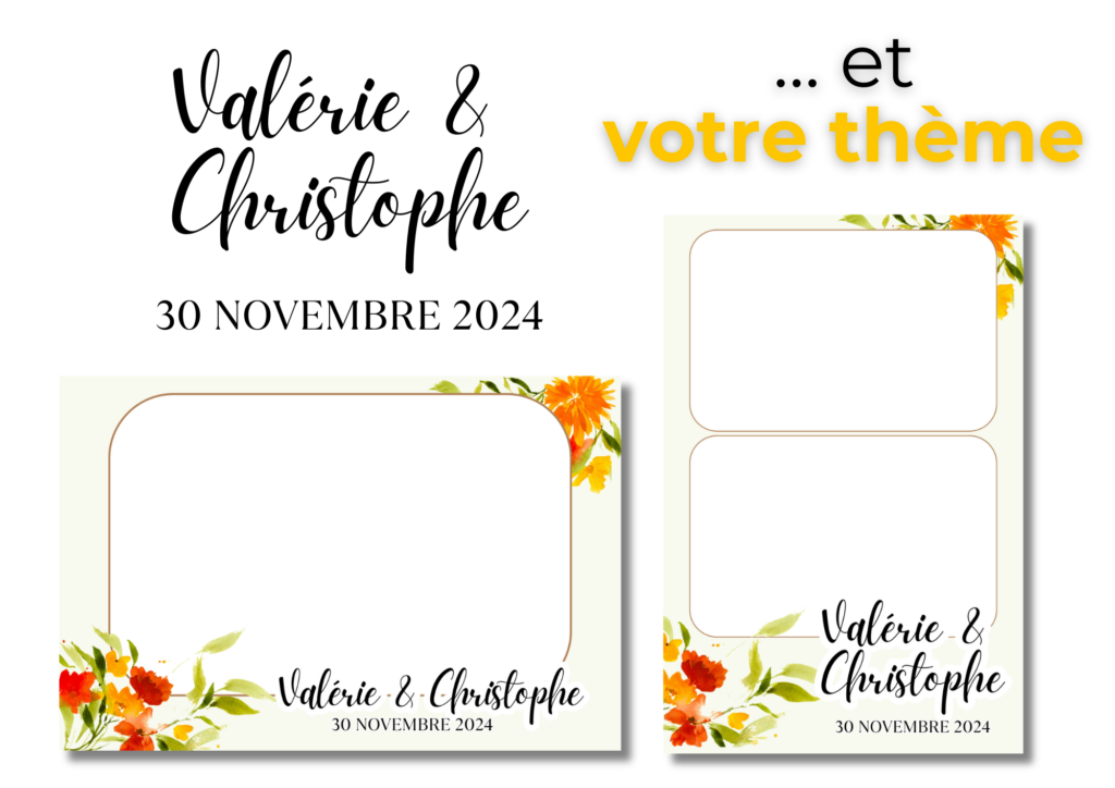 Absolument ! Chaque location de borne photo comprend une personnalisation sur mesure. Vous pouvez choisir un design assorti à votre faire-part ou à votre thème (champêtre, chic, etc.). Le tout sera intégré sur chaque tirage.